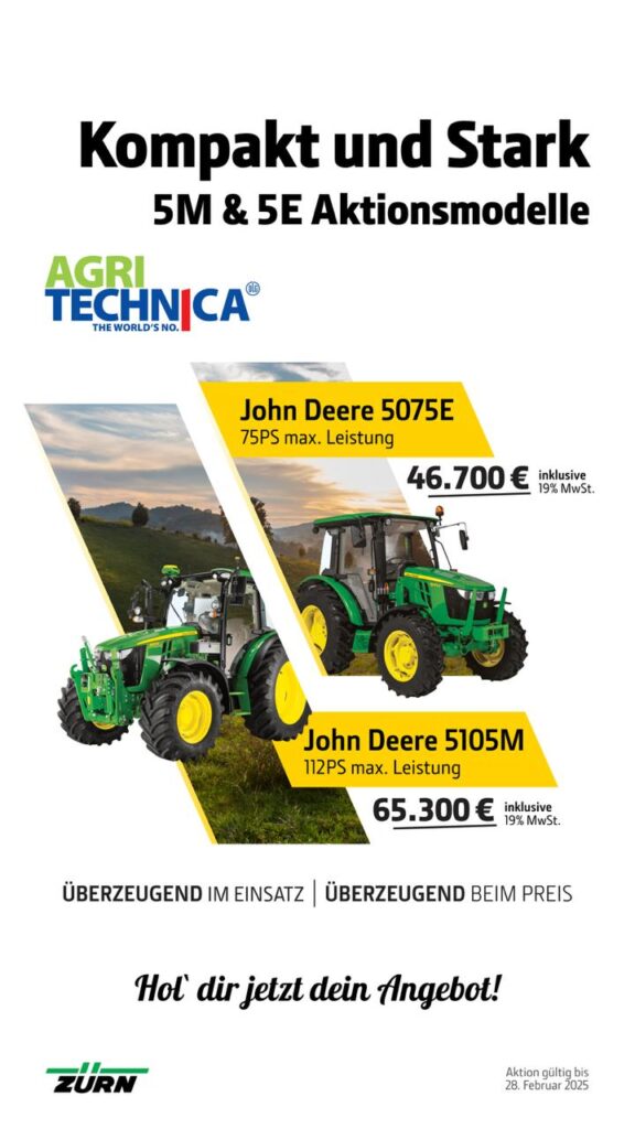 Es gelten unsere allgemeinen Geschäftsbedingungen. Weitere Informationen erhalten Sie von Ihrem John Deere Vertriebspartner