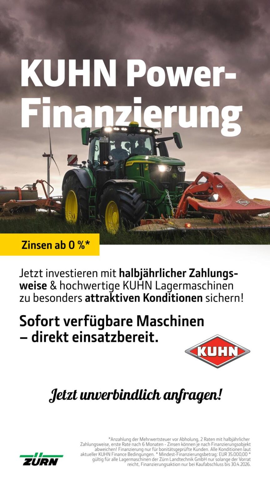 Ab 0% Zinsen und 6 Monate Zahlpause – jetzt Mähwerk, Wender oder Schwader als Lagermaschine bei Zürn kaufen und richtig attraktiv finanzieren!