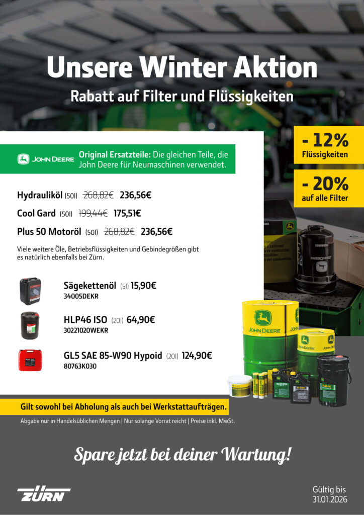 Lerne vor Ort in unseren Niederlassungen, wie du deine John Deere PrecisionAG Technik richtig und gewinnbringend einsetzen kannst! Termine im Januar und Februar 2026